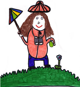 I am going on a forest safari. I have my canteen, hat, binoculars, and umbrella.just in case.