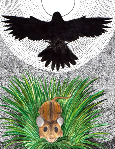 screeching screeching from the falcon, squeaking squeaking from the mouse.