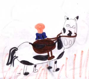 My horse would be white with black spots. His name would be Mike. We would be good friends because I would spend lots of time in the saddle.