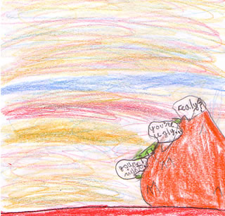 On the surface it is dry and reddish-orange. An alien could be anywhere! They could be hiding behind a huge boulder!
