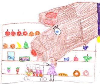 Molly was getting hungry; I decided to take her to the grocery store. When we were looking for food Molly lost control and ate all the food.