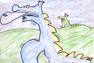 He shivered in the cold outdoors. He tried to blow fire to warm up but only bubbles came out as big as him. He had been drinking in the bathtub. Another dragon found him and started laughing and making fun of him.