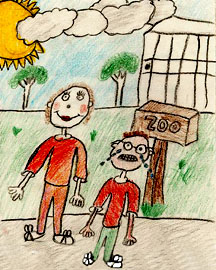 Suddenly, Zack's eyes started to water, and he said to himself in a very firm way, " I am going to cry and cry and never stop crying." He cried going out of the zoo. |