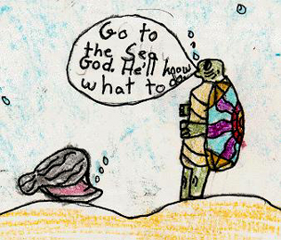 When she finally got there and had told her story, the old turtle said, " Oyster, go to the Sea God and tell him your story. He'll know what to do." |