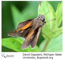 dogbane, clover, and New Jersey tea. Lifecycle BehaviorThe Northern broken-dash is sometimes confused with the Dun skipper, and they are often found feeding together. |