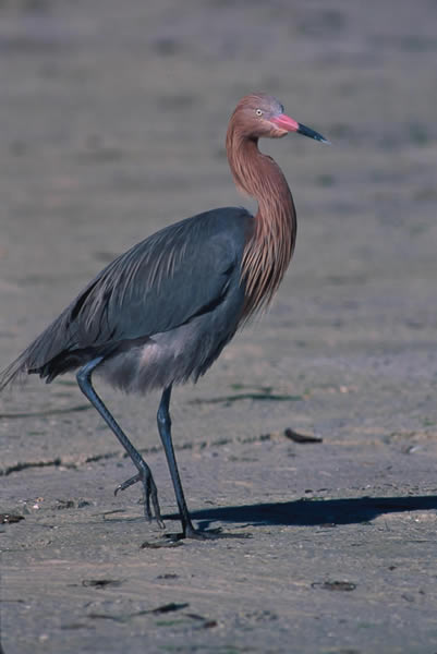The reddish egret is found on the Gulf Coast in Texas and Louisiana and on the Gulf and Atlantic coasts of southern Florida. It is also found in Mexico, the Caribbean, and northern South America.